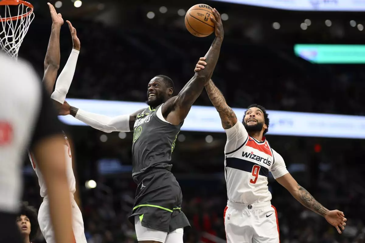 Julius Randle added 20 points and 10 rebounds and Rudy Gobert had 11 points and 11 rebounds for Minnesota, which committed 13 turnovers in the first half and briefly trailed the Wizards in the third quarter.
