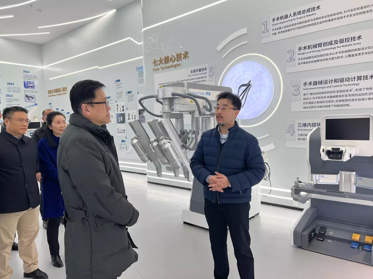 In the afternoon, Professor Sun first visited an integrated pharmaceutical equipment service provider, which offers pharmaceutical process, core equipment and system engineering solutions for global pharmaceutical enterprises. He then visited a high-tech enterprise focusing on the cutting-edge technology and clinical application of single-port general-purpose minimally invasive laparoscopic surgical robotic systems, and an innovative investment fund platform on biomedicine.