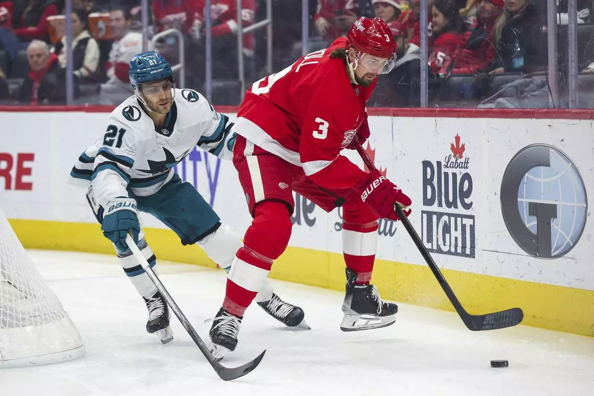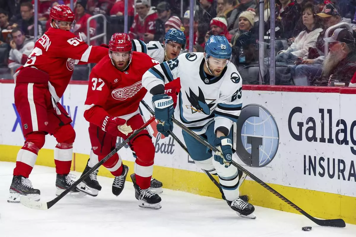 DETROIT (AP) — William Eklund had a goal and two assists and the San Jose Sharks ended Detroit's seven-game winning streak, beating the Red Wings 6-3 on Tuesday night.