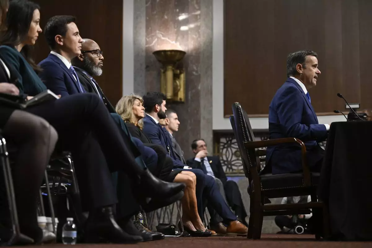 John Ratcliffe, seated right, President-elect Donald Trump's choice to be the Director of the Central Intelligence Agency, appears before the Senate Intelligence Committee for his confirmation hearing, at the Capitol in Washington, Wednesday, Jan. 15, 2025. (AP Photo/John McDonnell)