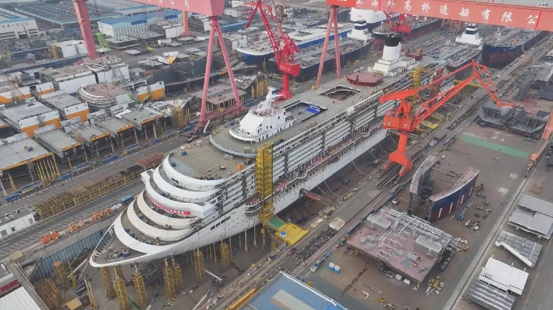 China's second domestically built large cruise ship, named "Adora Flora City", completed its main hull assembly in Shanghai on Wednesday, marking a major leap forward in the country's shipbuilding capabilities.