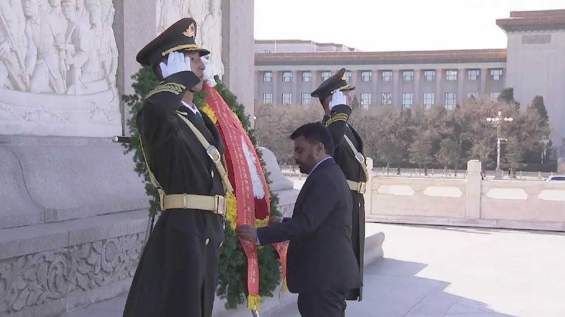 Sri Lankan President Anura Kumara Dissanayake laid a wreath at the Monument to the People's Heroes at the Tian'anmen Square in Beijing on Thursday afternoon.