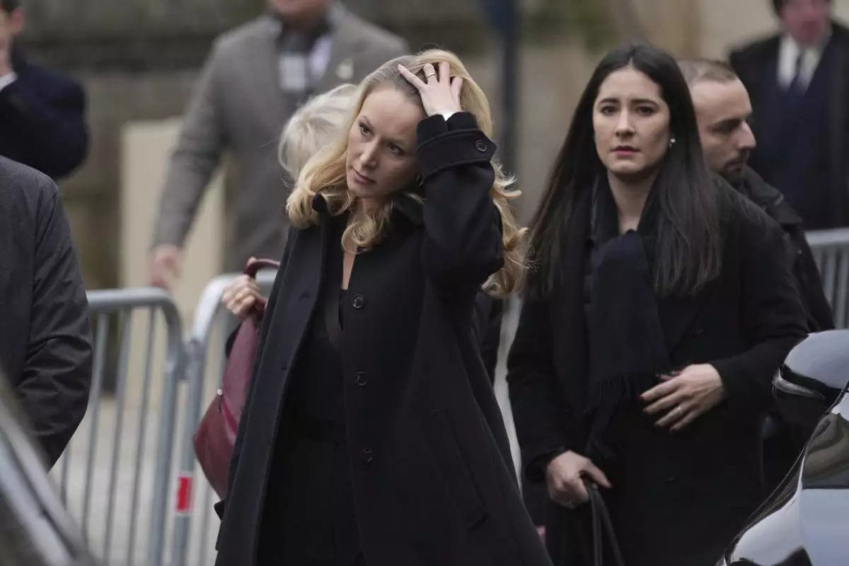 Marion Marechal, center, arrives at Notre Dame du Val-de-Grace church for a public memorial for her grand-father and late far-right leader Jean-Marie Le Pen, Thursday, Jan. 16, 2025 in Paris. Jean-Marie Le Pen, the founder of France's main far-right party, died on Jan.7, 2025 aged 96. (AP Photo/Thibault Camus)