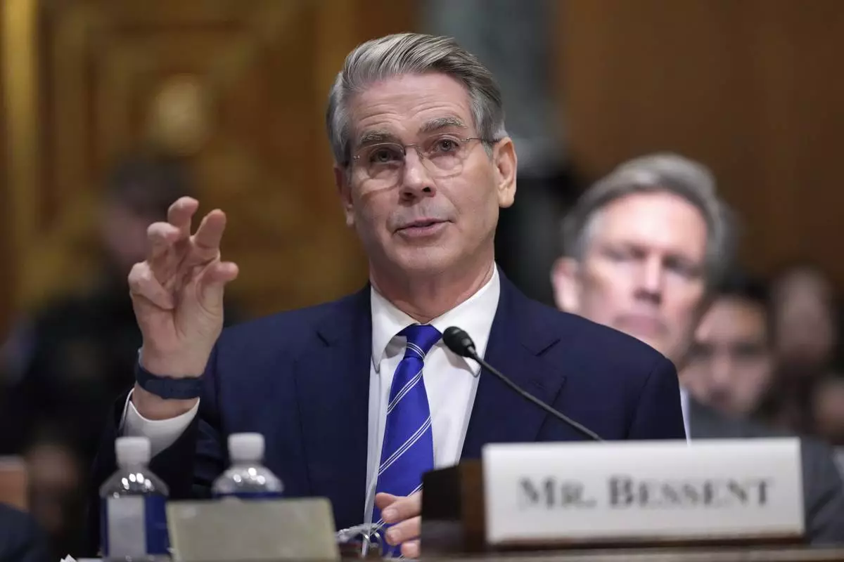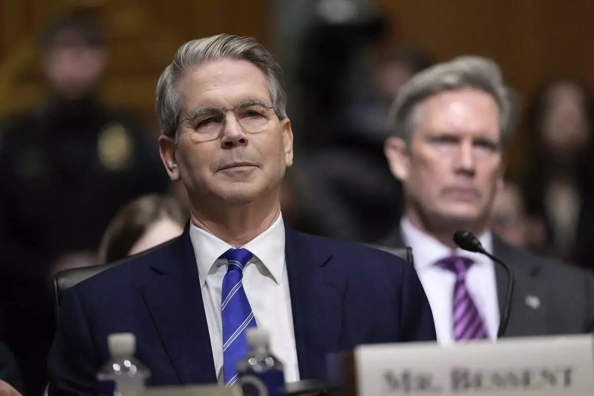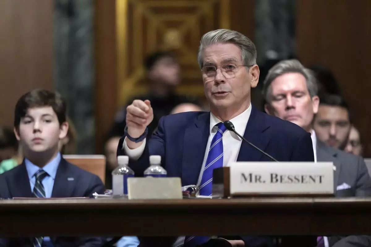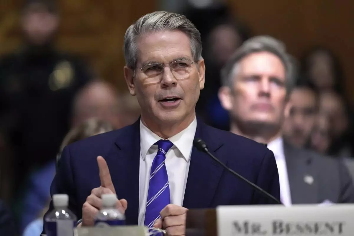 Scott Bessent, President-elect Donald Trump's choice to be secretary of the Treasury, appears before the Senate Finance Committee for his confirmation hearing, at the Capitol in Washington, Thursday, Jan. 16, 2025. (AP Photo/J. Scott Applewhite)