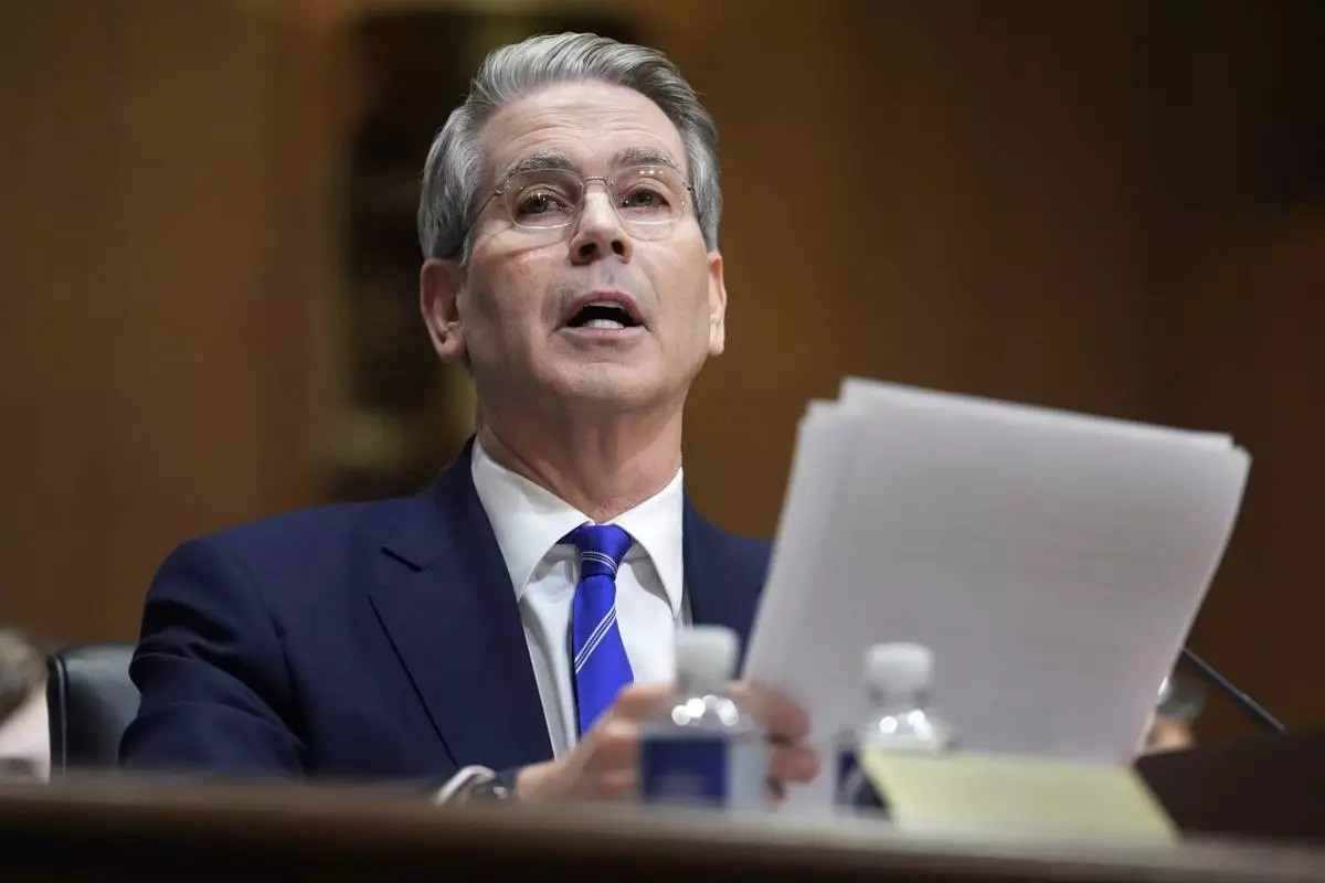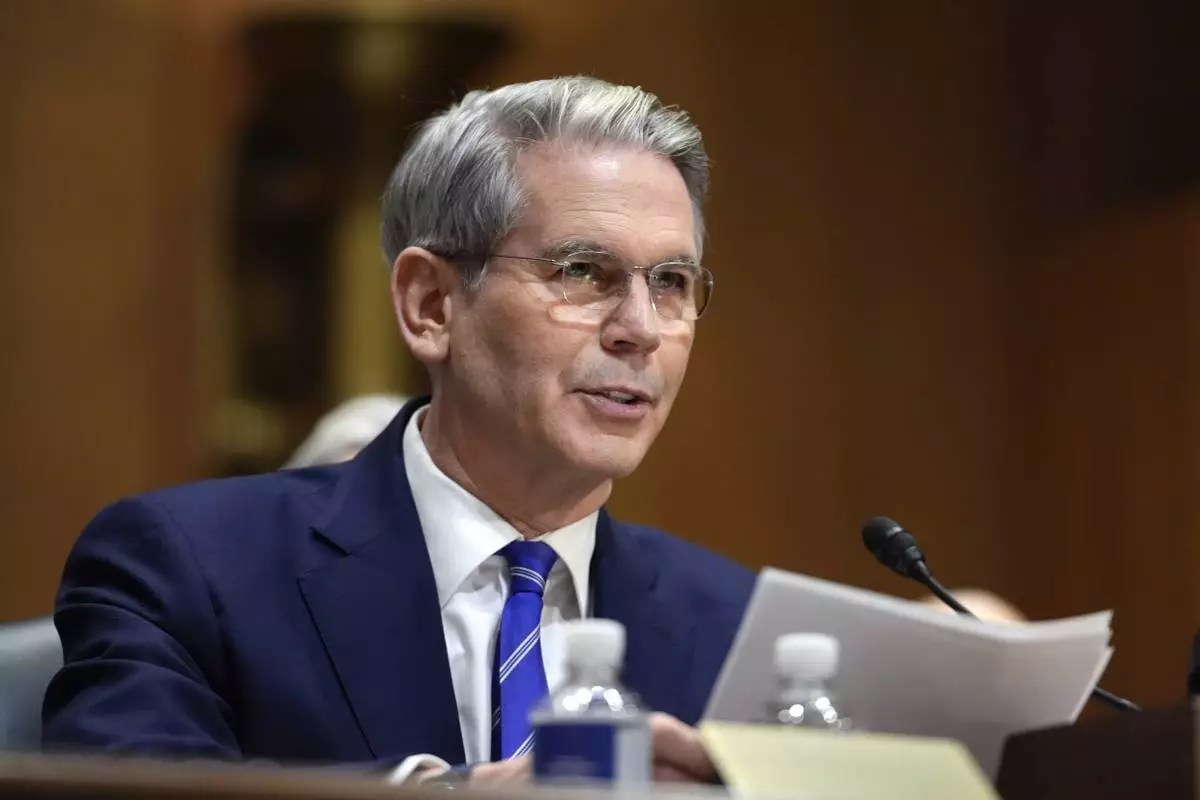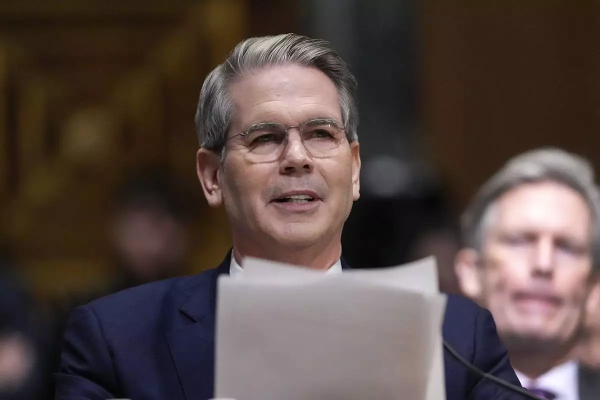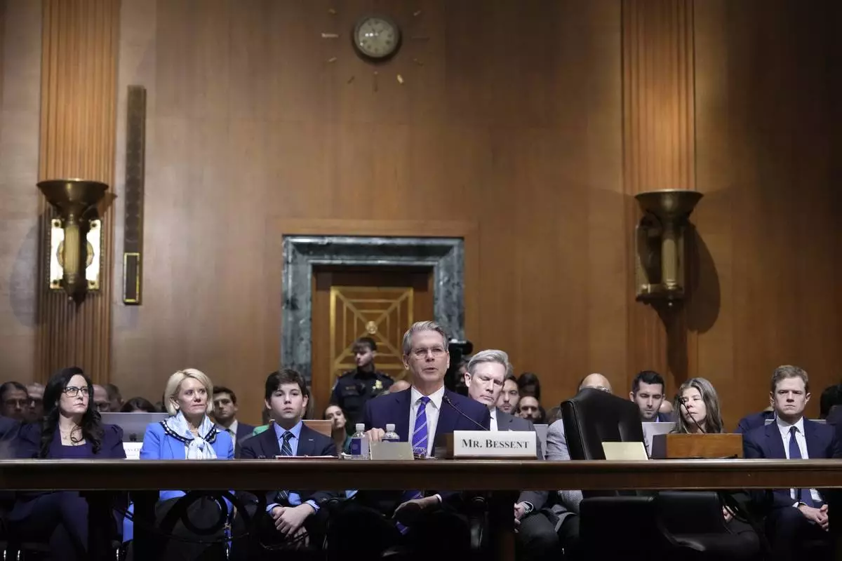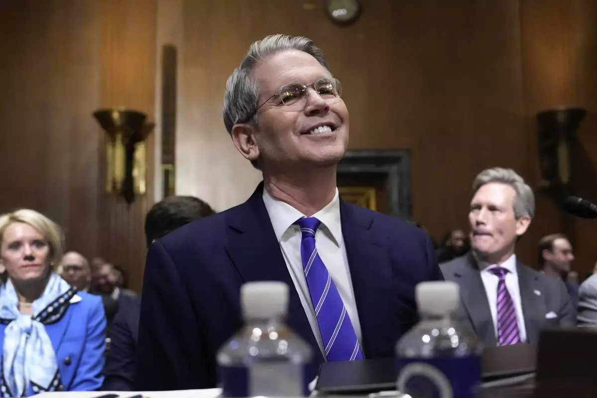 Scott Bessent, President-elect Donald Trump's choice to be secretary of the Treasury, appears before the Senate Finance Committee for his confirmation hearing, at the Capitol in Washington, Thursday, Jan. 16, 2025. (AP Photo/J. Scott Applewhite)