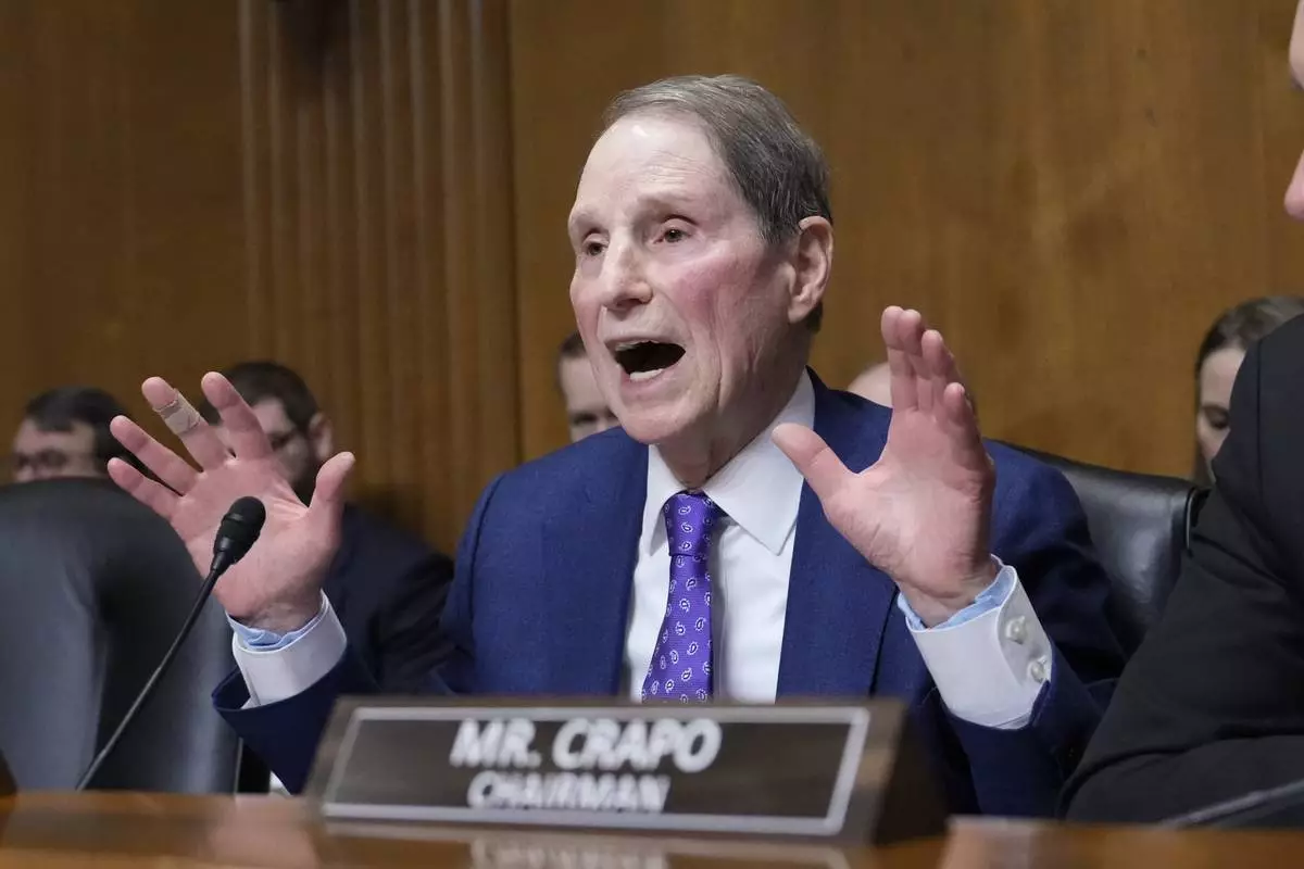 Ranking Member Ron Wyden, D-Ore., speaks at the Senate Finance Committee confirmation hearing for Scott Bessent, President-elect Donald Trump's choice to be Secretary of the Treasury, at the Capitol in Washington, Thursday, Jan. 16, 2025. (AP Photo/Ben Curtis)