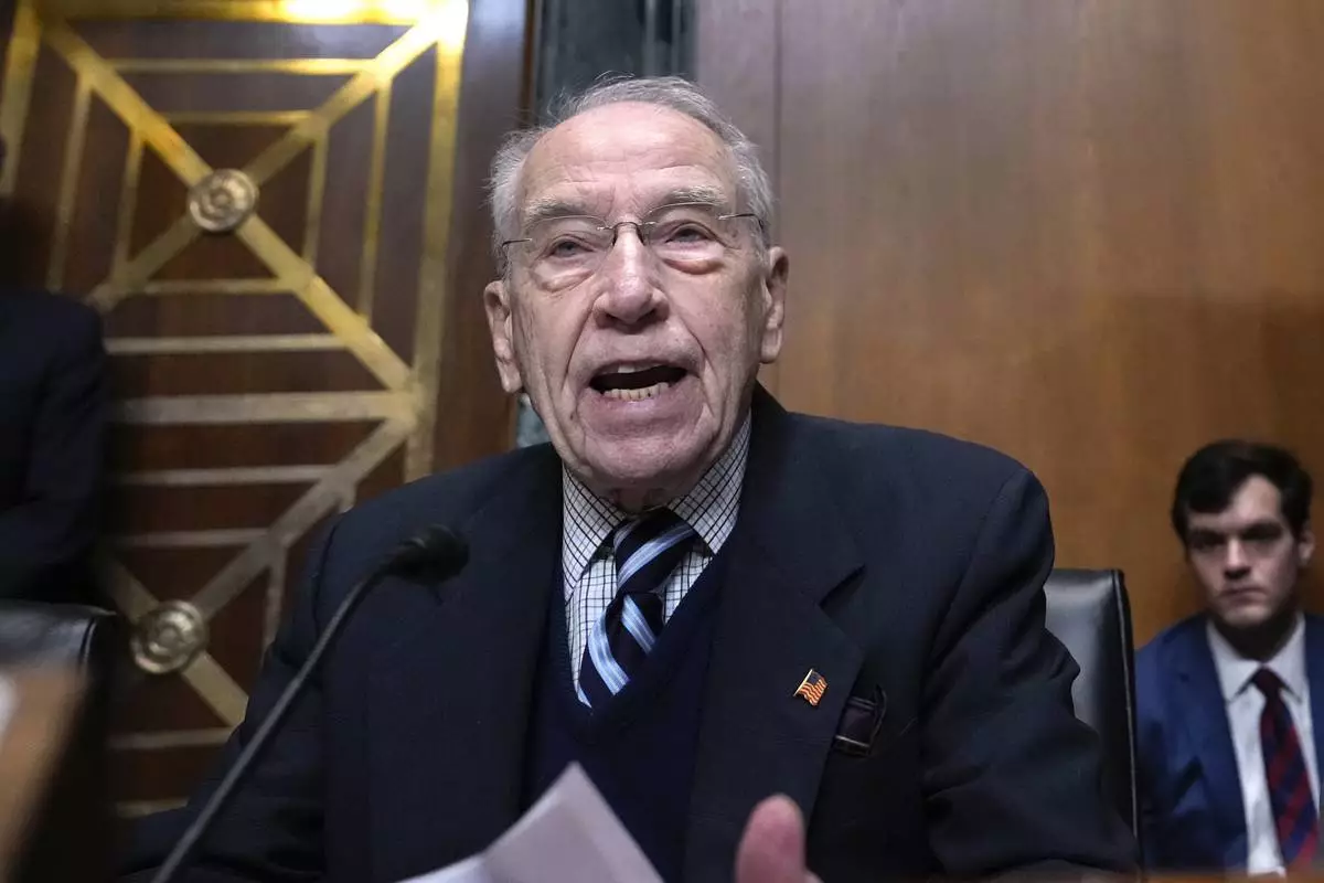 Sen. Chuck Grassley, R-Iowa, speaks at the Senate Finance Committee confirmation hearing for Scott Bessent, President-elect Donald Trump's choice to be Secretary of the Treasury, at the Capitol in Washington, Thursday, Jan. 16, 2025. (AP Photo/Ben Curtis)