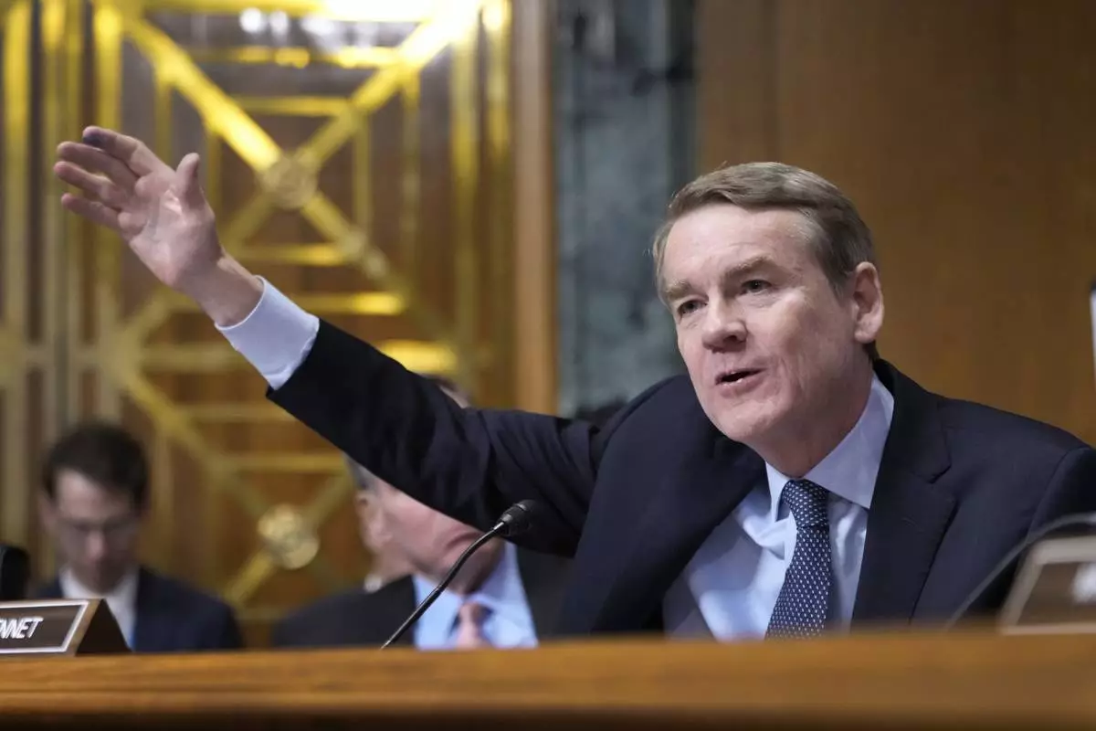 Sen. Michael Bennet, D-Colo.,speaks at the Senate Finance Committee confirmation hearing for Scott Bessent, President-elect Donald Trump's choice to be Secretary of the Treasury, at the Capitol in Washington, Thursday, Jan. 16, 2025. (AP Photo/Ben Curtis)