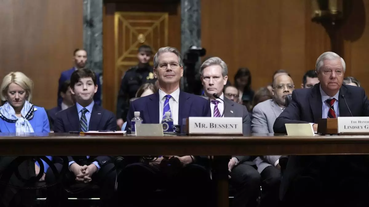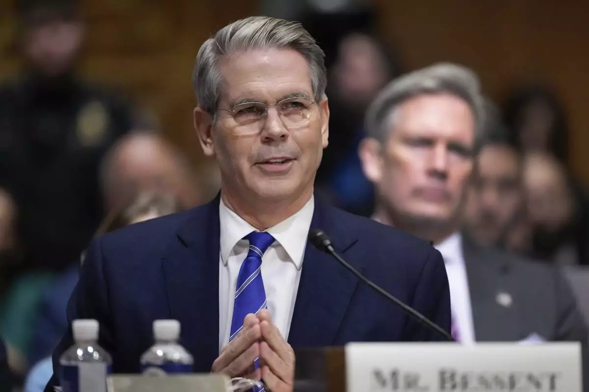 Scott Bessent, President-elect Donald Trump's choice to be Secretary of the Treasury, appears before the Senate Finance Committee for his confirmation hearing, at the Capitol in Washington, Thursday, Jan. 16, 2025. (AP Photo/Ben Curtis)