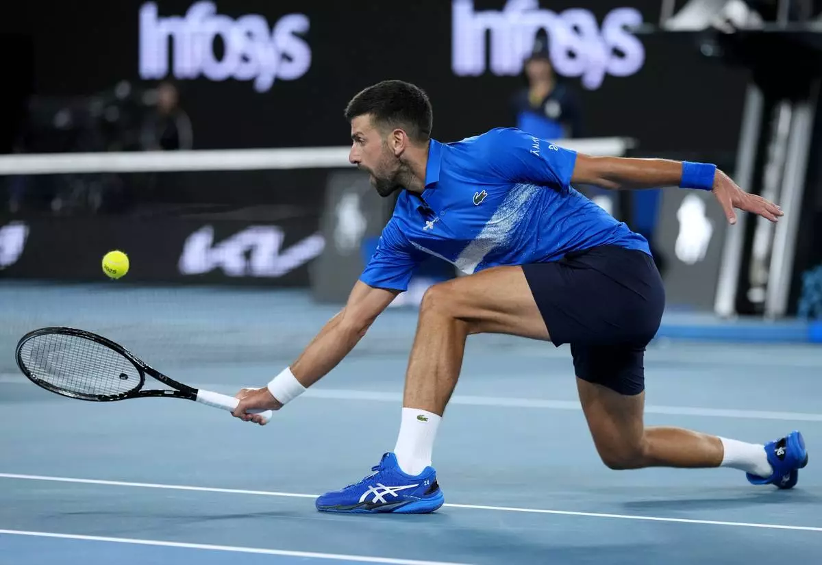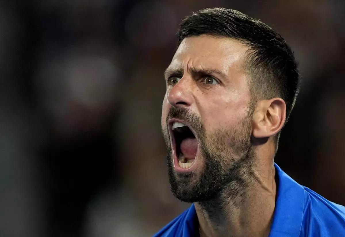 Novak Djokovic of Serbia reacts after winning a point against Tomas Machac of the Czech Republic during their third round match at the Australian Open tennis championship in Melbourne, Australia, Friday, Jan. 17, 2025. (AP Photo/Asanka Brendon Ratnayake)