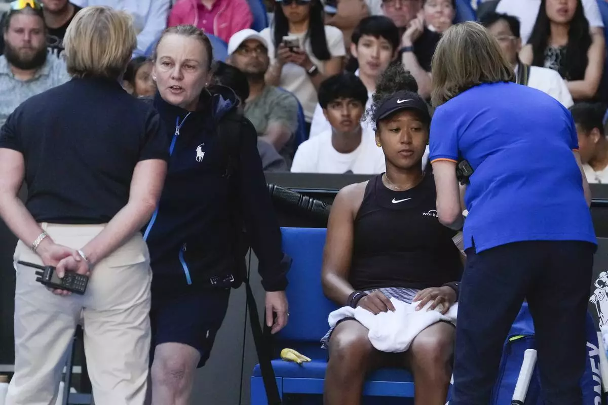 Naomi Osaka, a two-time champion in Australia, stopped playing because of a strained abdominal muscle after dropping the first set of her match against Tokyo Olympics gold medalist Belinda Bencic.