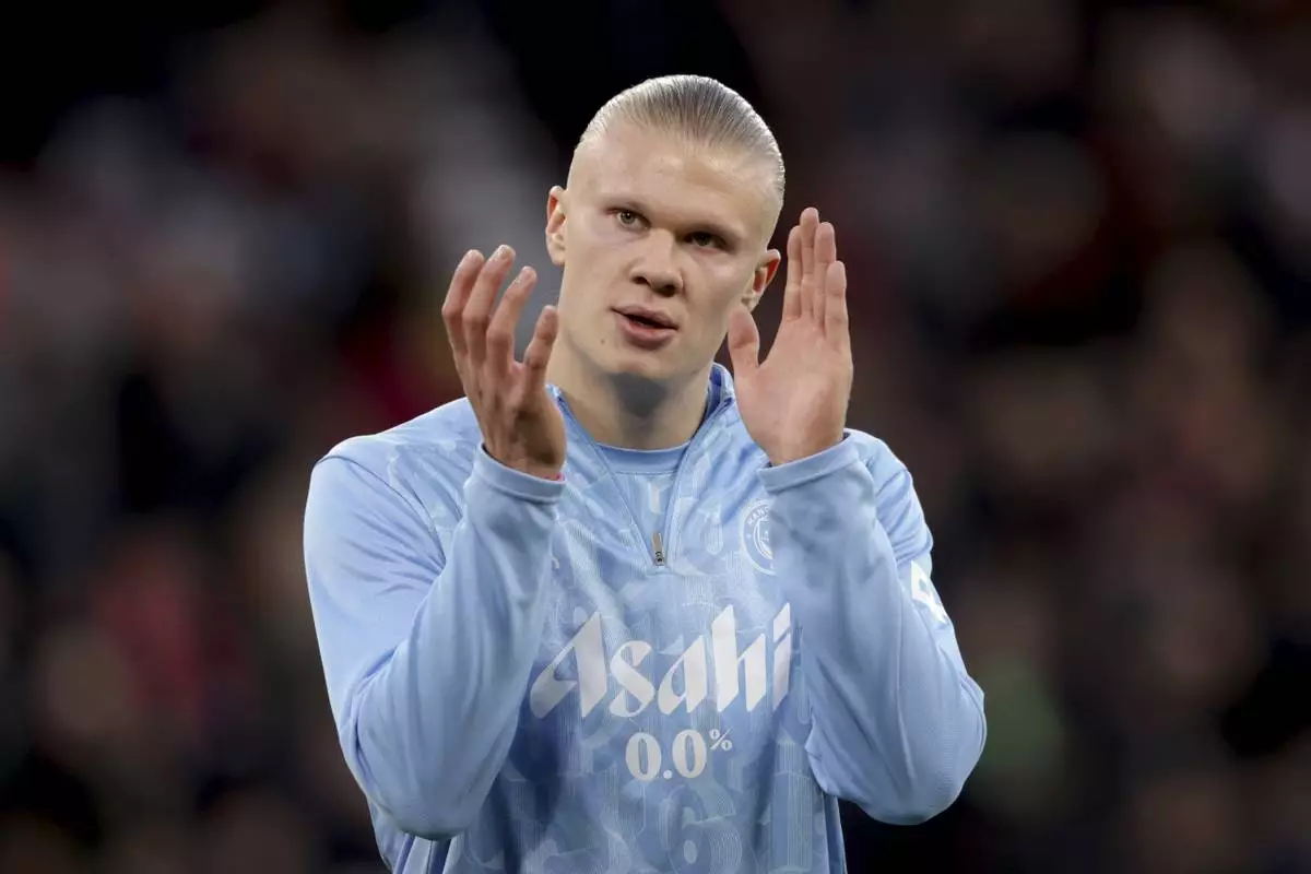 FILE -Manchester City's Erling Haaland waves fans after the English Premier League soccer match between Manchester City and Ipswich Town at the Etihad Stadium in Manchester, England, Aug. 24, 2024. (AP Photo/Dave Thompson, File)