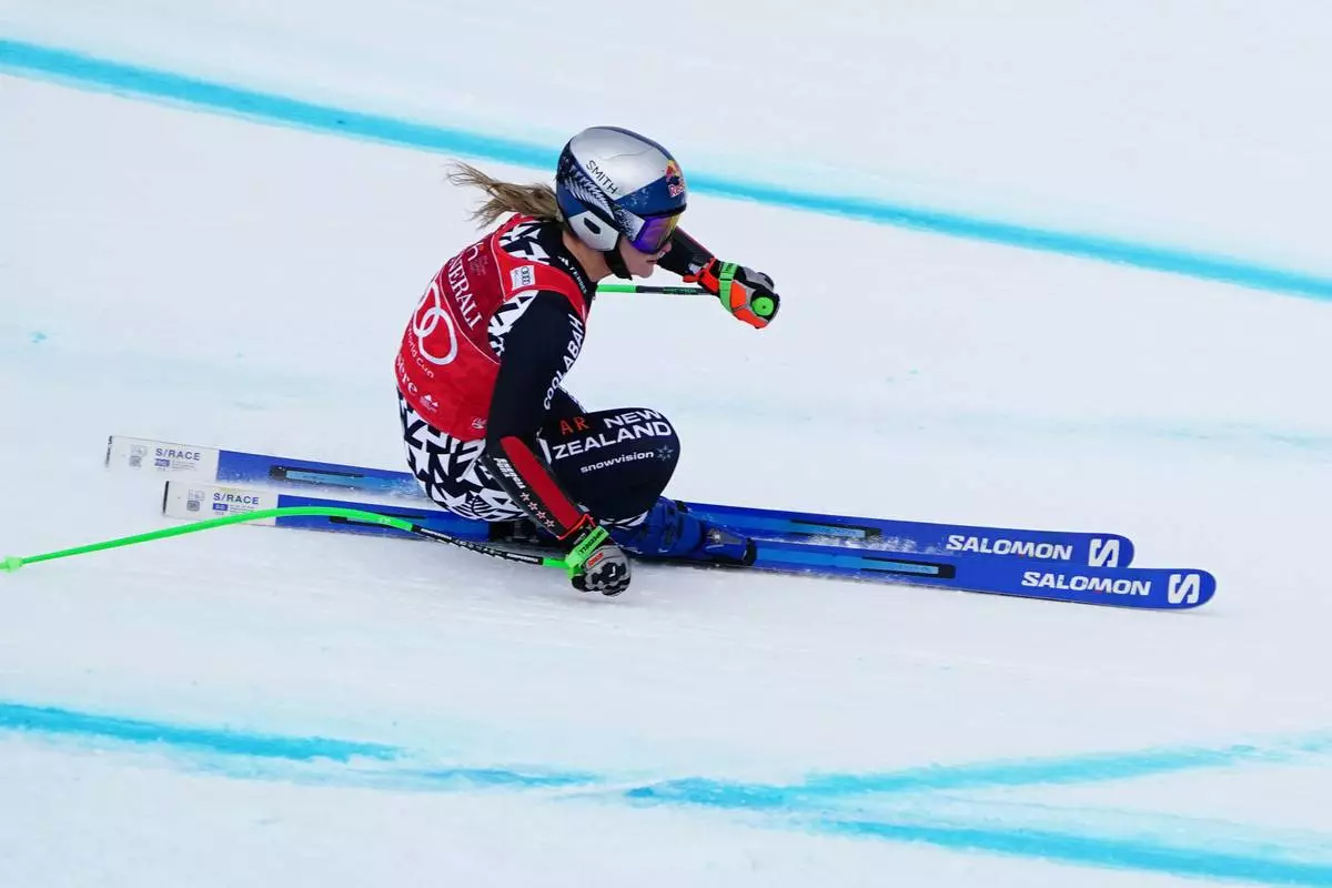 The two former Olympic downhill champions — and biggest personalities in women's speed races — were split on a high-class podium Sunday by runner-up Alice Robinson, who is already a two-time winner this season on the World Cup circuit.