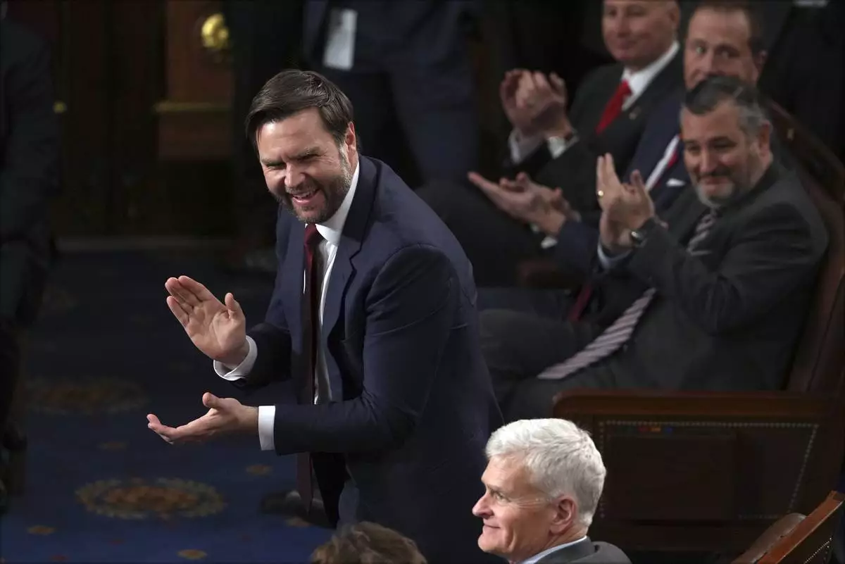 Vice President-elect JD Vance smiles after the certification for Ohio is read during a joint session of Congress to confirm the Electoral College votes, affirming President-elect Donald Trump's victory in the presidential election, Monday, Jan. 6, 2025, at the U.S. Capitol in Washington. (AP Photo/Matt Rourke)