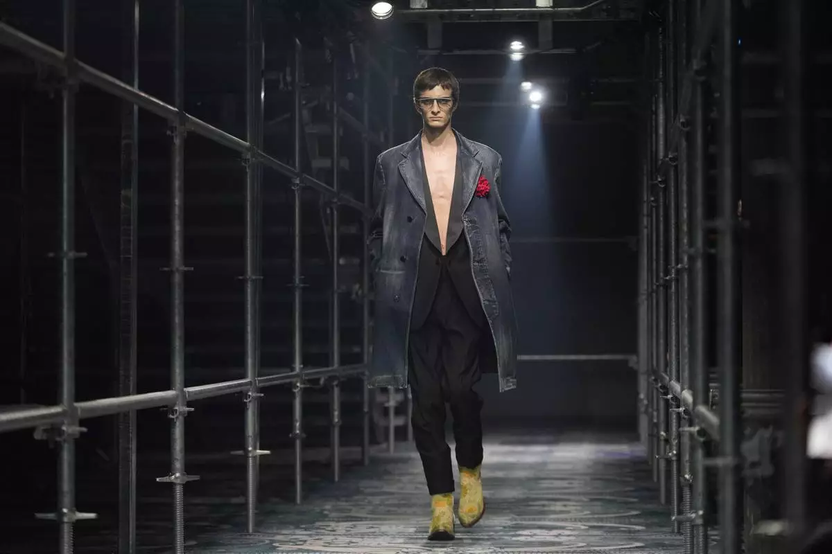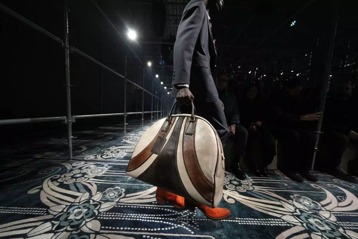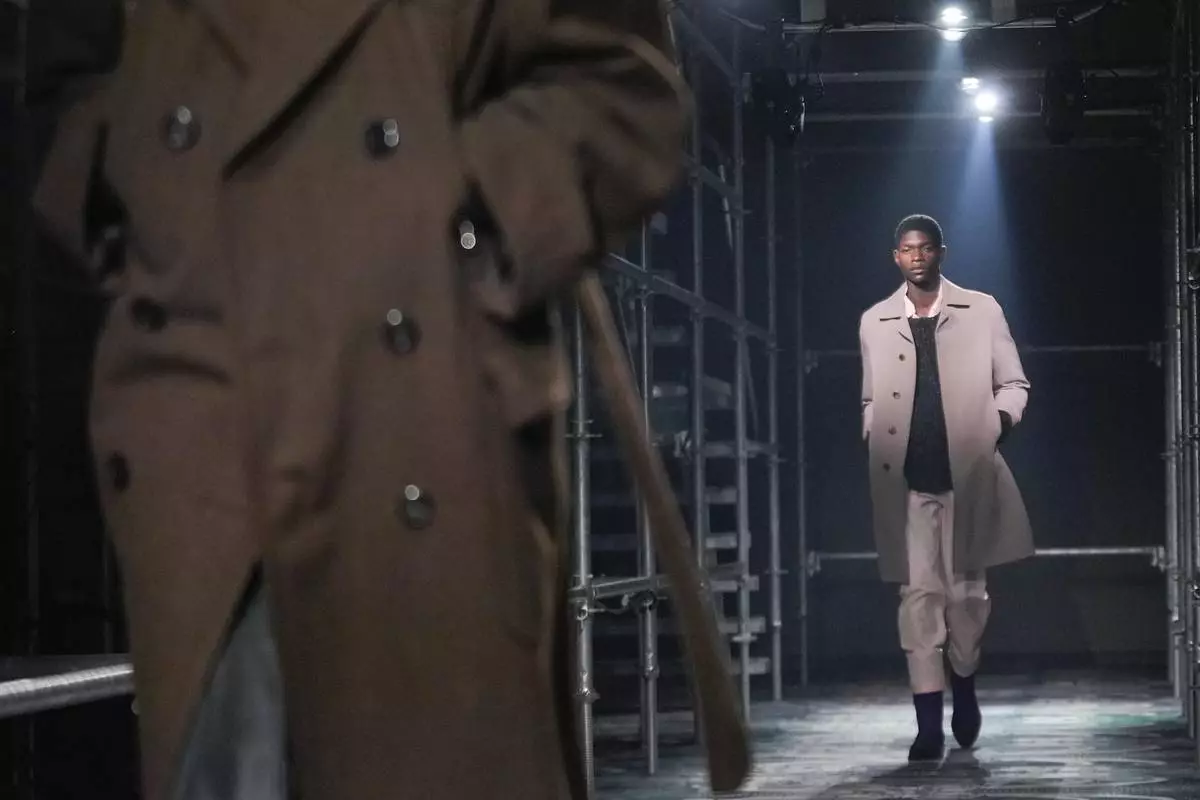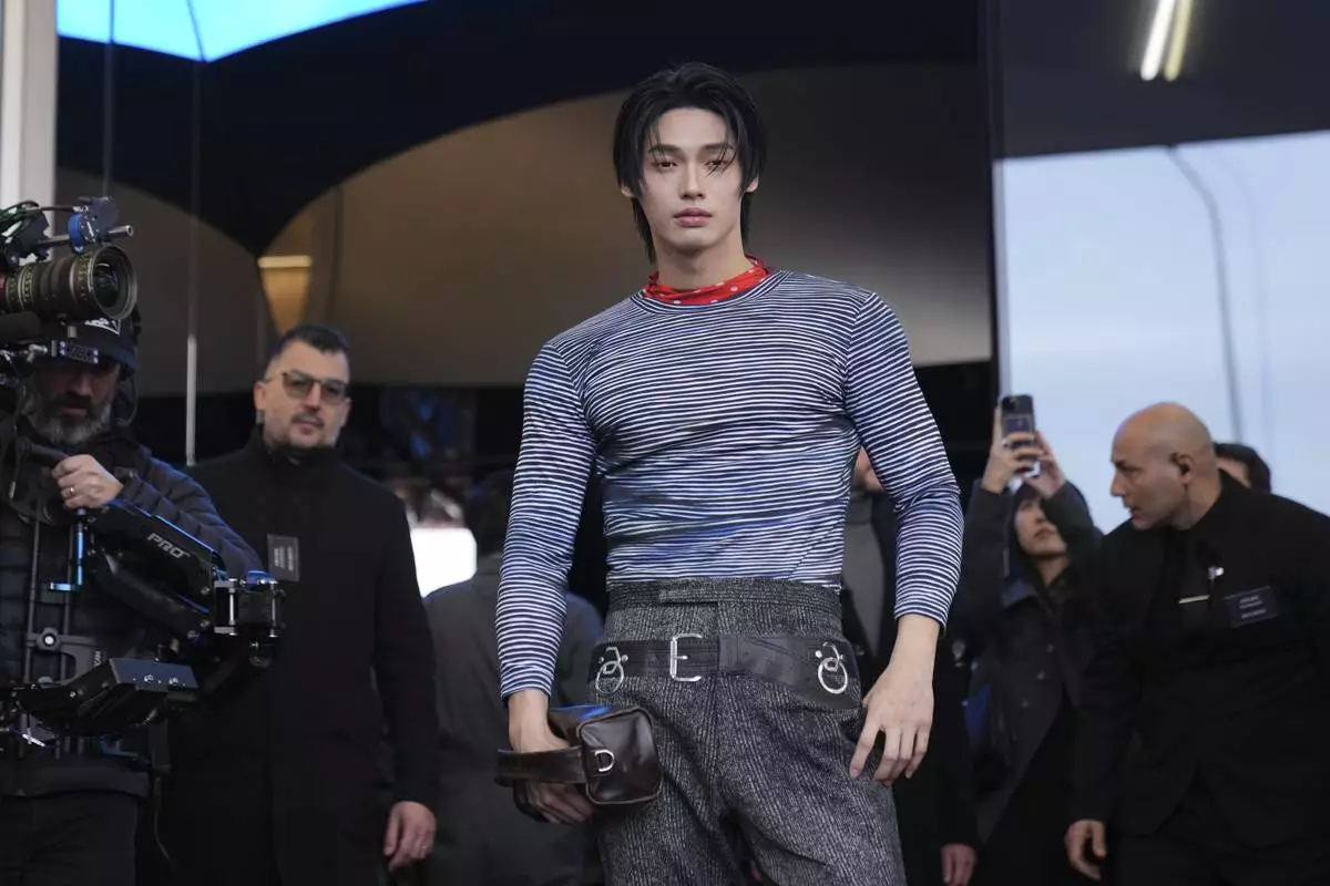 A model wears a creation part of the men's Prada Fall-Winter 2025-2026 collection, that was presented in Milan, Italy, Sunday, Jan. 19, 2025. (AP Photo/Luca Bruno)