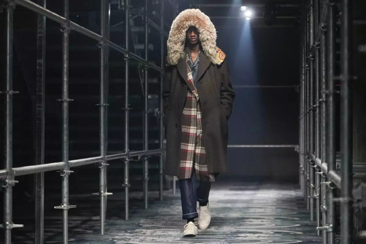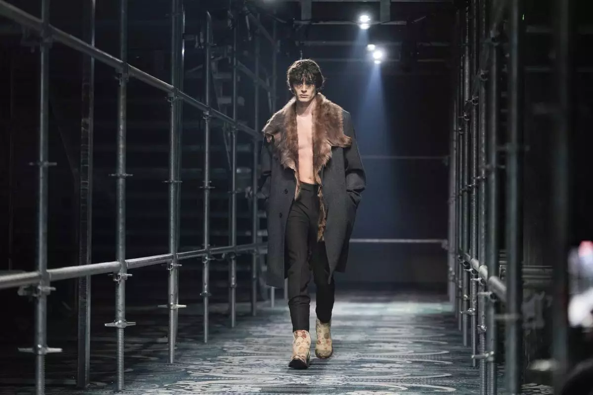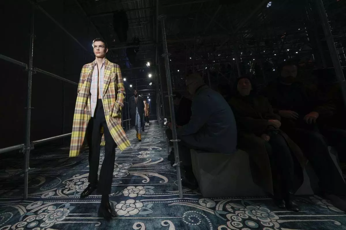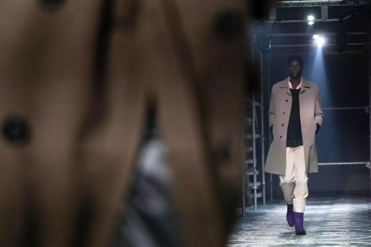 A model wears a creation part of the men's Prada Fall-Winter 2025-2026 collection, that was presented in Milan, Italy, Sunday, Jan. 19, 2025. (AP Photo/Luca Bruno)
