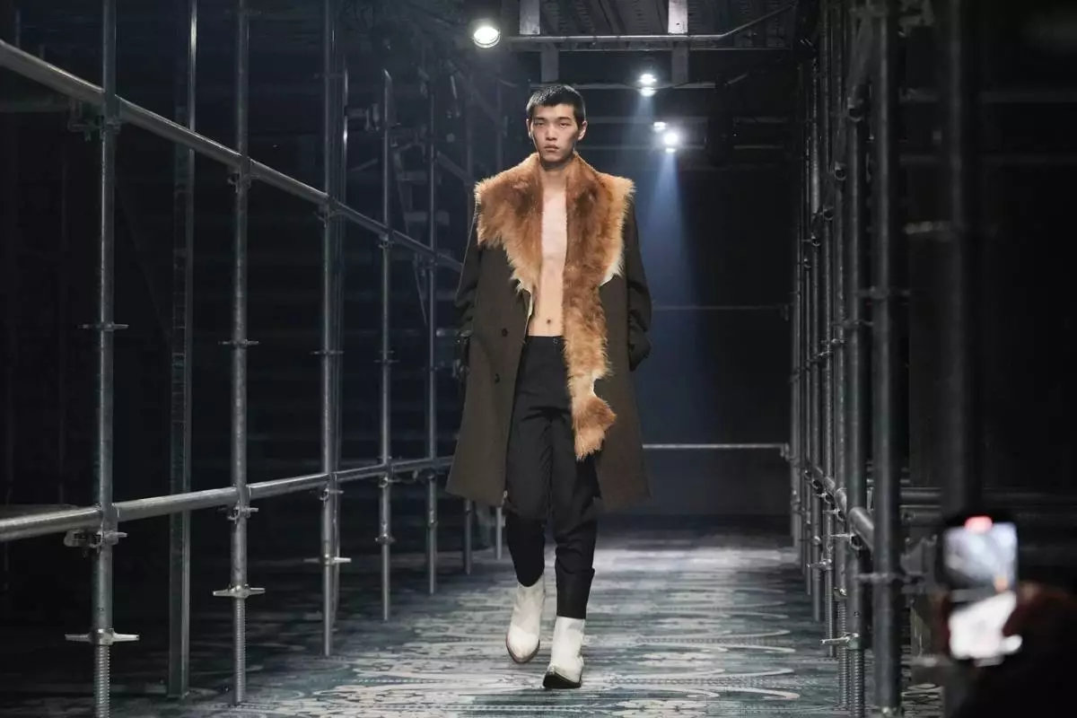 Cinematic references were broad and not specific to any film, director or even character type, Simons said. Western touches included scuffed cowboy boots and knitwear mimicking a wrangler’s shirt - without creating characters or caricatures.
