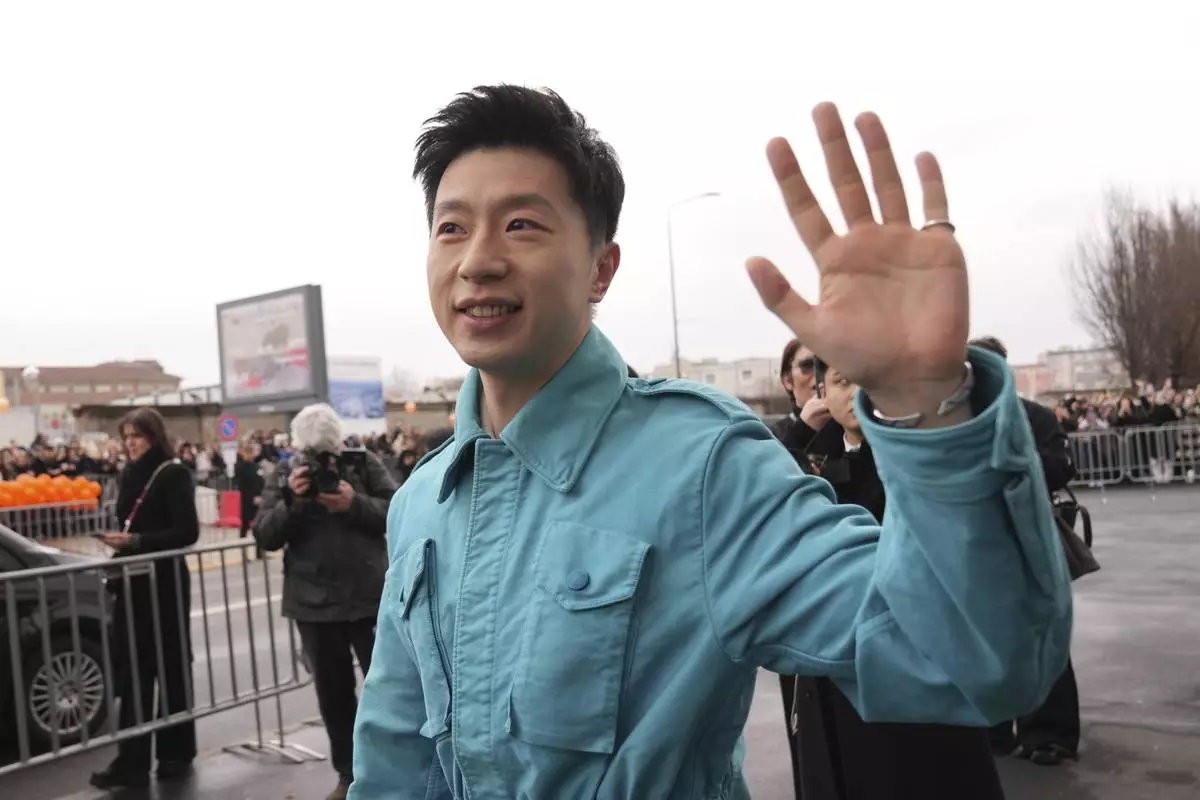 Ma Long arrives as he attends at the men's Prada Fall-Winter 2025-2026 collection show, that was presented in Milan, Italy, Sunday, Jan. 19, 2025. (AP Photo/Antonio Calanni)