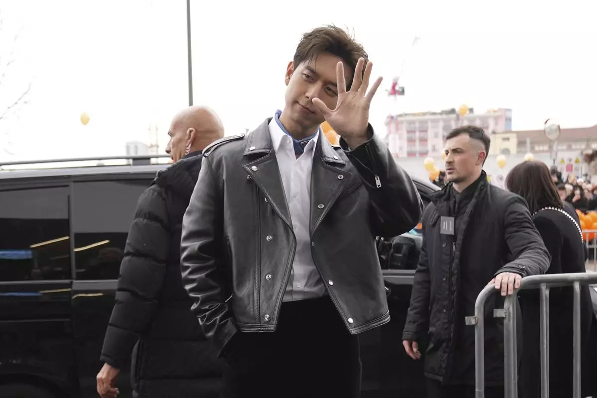 Li Xian arrives as he attends at the men's Prada Fall-Winter 2025-2026 collection show, that was presented in Milan, Italy, Sunday, Jan. 19, 2025. (AP Photo/Antonio Calanni)