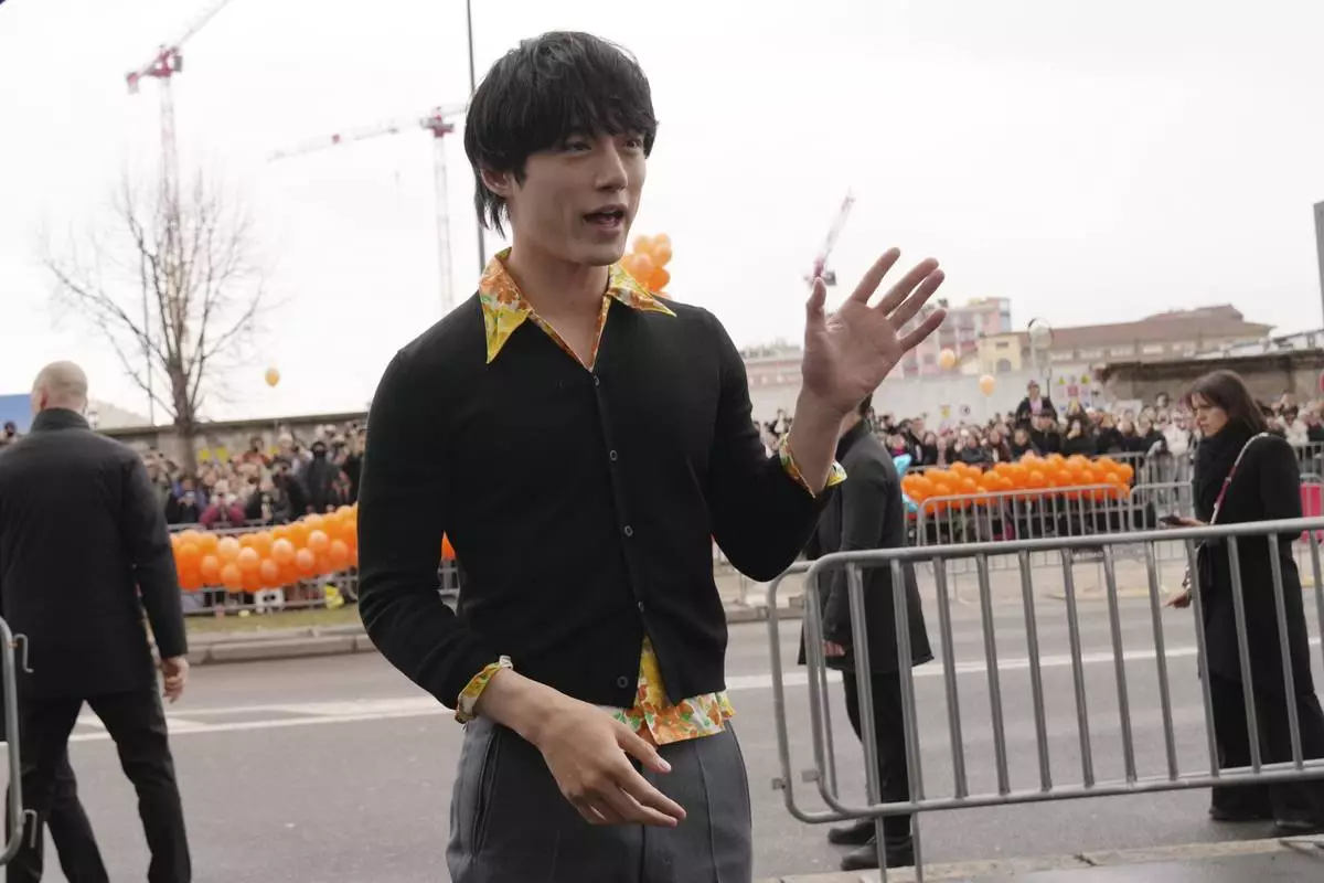 Kentaro Sakaguchi arrives as he attends at the men's Prada Fall-Winter 2025-2026 collection show, that was presented in Milan, Italy, Sunday, Jan. 19, 2025. (AP Photo/Antonio Calanni)