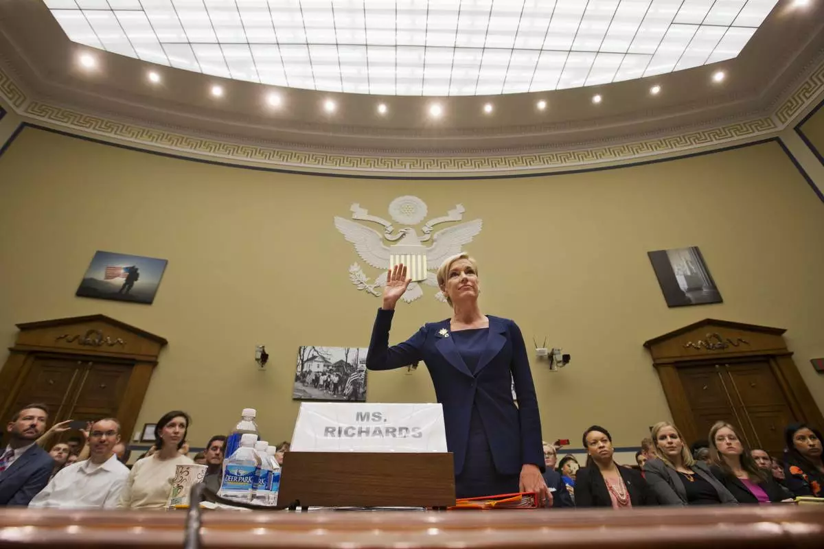 FILE - Planned Parenthood President Cecile Richards is sworn in on Capitol Hill in Washington, before testifying before the House Oversight and Government Reform Committee hearing on "Planned Parenthood's Taxpayer Funding," Sept. 29, 2015. (AP Photo/Jacquelyn Martin, File)