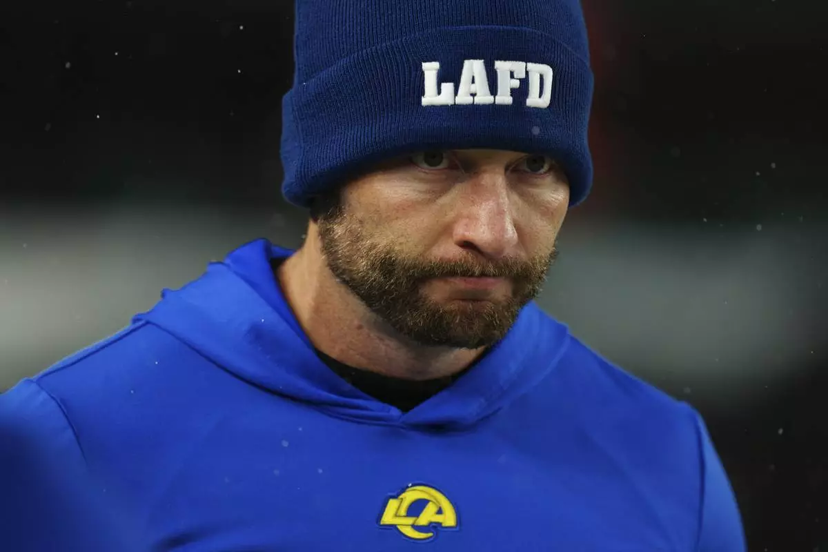 Los Angeles Rams head coach Sean McVay walks the sidelines during the second half of an NFL football NFC divisional playoff game against the Philadelphia Eagles on Sunday, Jan. 19, 2025, in Philadelphia. (AP Photo/Derik Hamilton)