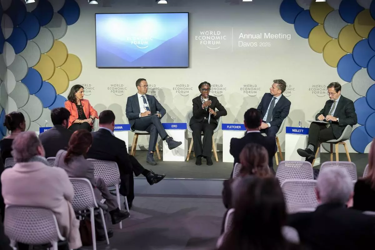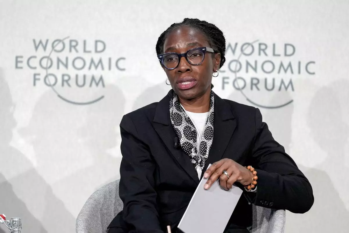 Comfort Ero, president and CEO of the Crisis Group speaks during a briefing on the humanitarian situation in Gaza at the Annual Meeting of World Economic Forum in Davos, Switzerland, Tuesday, Jan. 21, 2025. (AP Photo/Markus Schreiber)