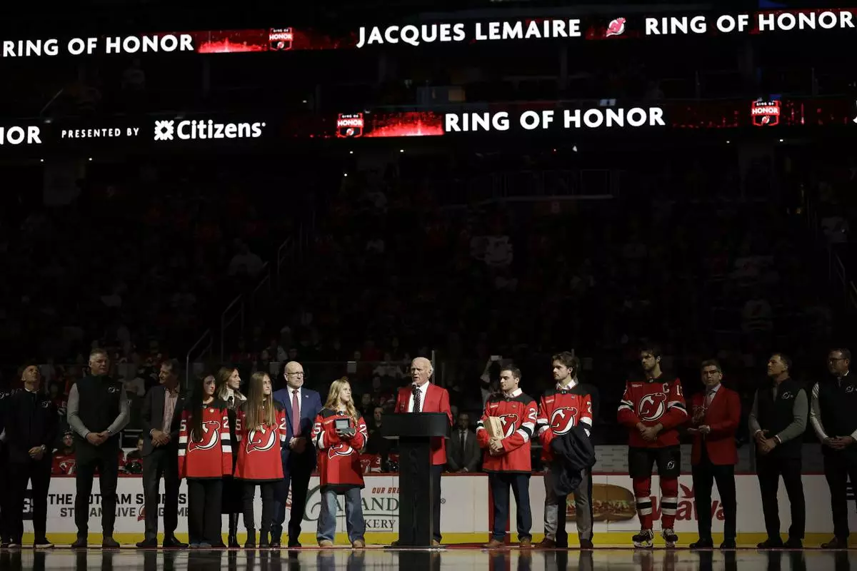 NEWARK, N.J. (AP) — The New Jersey Devils honored former coach Jacques Lemaire, inducting the 11-time Stanley Cup champion into the team's Ring of Honor.
