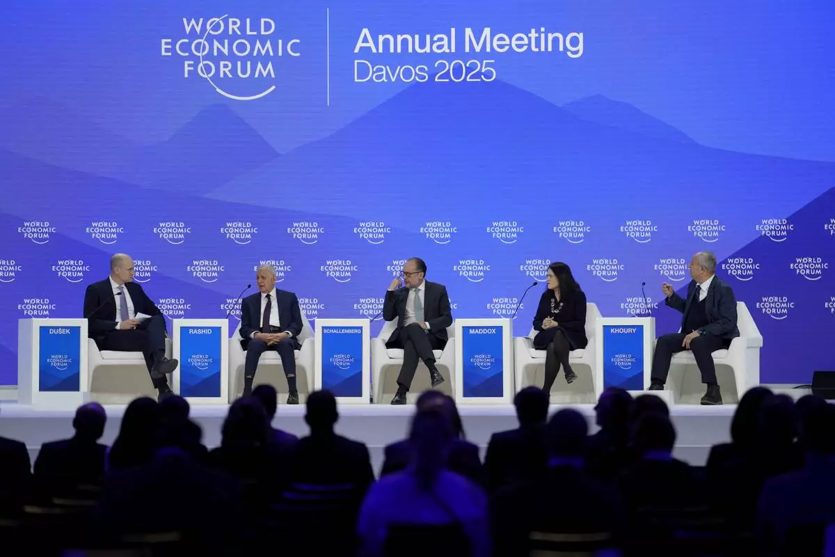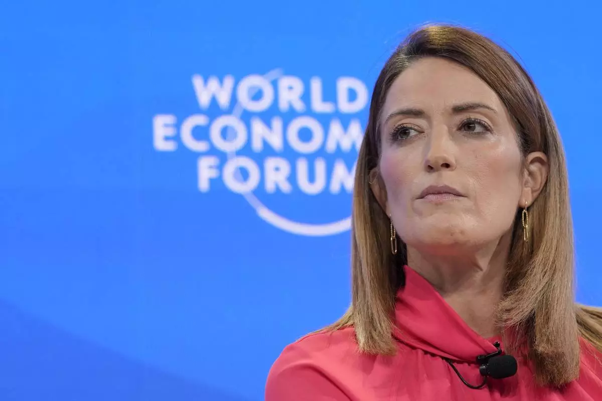 European Parliament President Roberta Metsola attends the Annual Meeting of World Economic Forum in Davos, Switzerland, Thursday, Jan. 23, 2025. (AP Photo/Markus Schreiber)