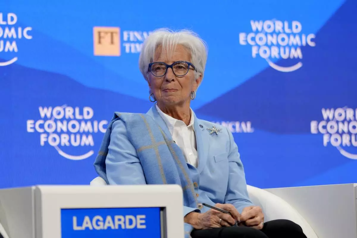 ECP President Christine Lagarde attends the Annual Meeting of World Economic Forum in Davos, Switzerland, Wednesday, Jan. 22, 2025. (AP Photo/Markus Schreiber)
