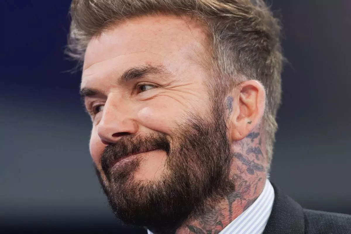 David Beckham attends a conversation during the Annual Meeting of World Economic Forum in Davos, Switzerland, Tuesday, Jan. 21, 2025. (AP Photo/Markus Schreiber)