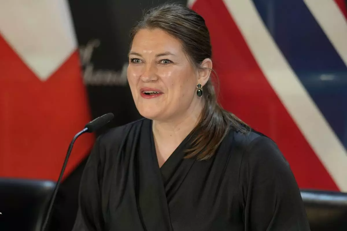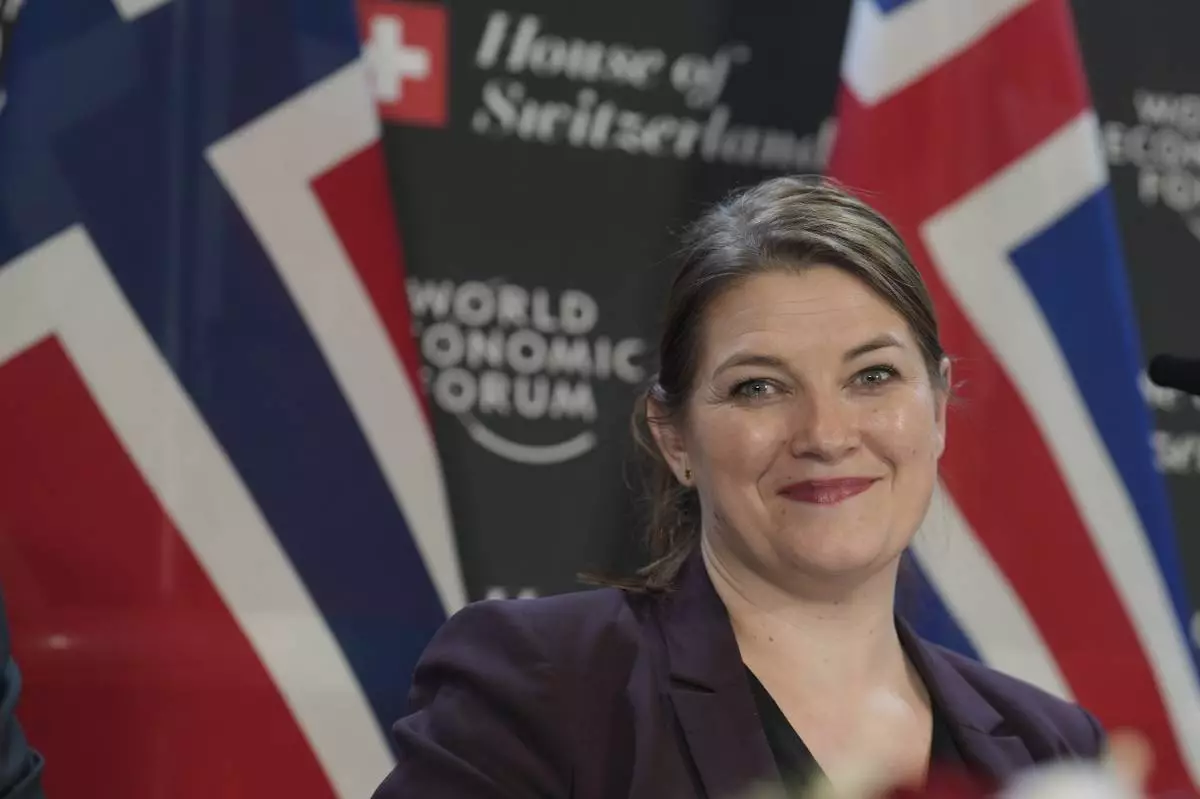 Trade and Industry Minister of Norway Cecilie Terese Myrseth looks on prior to the signing of an EFTA Free Trade Agreement at the Annual Meeting of World Economic Forum in Davos, Switzerland, Wednesday, Jan. 22, 2025. (AP Photo/Markus Schreiber)