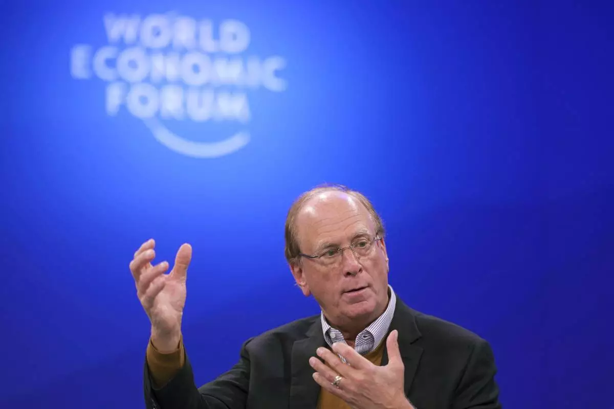 CEO of BlackRock Larry Fink speaks at the Annual Meeting of World Economic Forum in Davos, Switzerland, Thursday, Jan. 23, 2025. (AP Photo/Markus Schreiber)