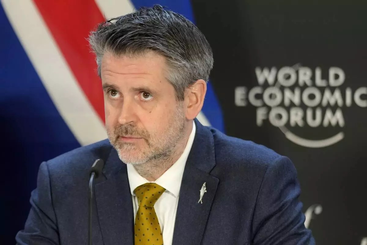 Martin Eyjolfsson, Permanent Secretary of State, Ministry of Foreign Affairs of Iceland, arrives for a signing ceremony at the Annual Meeting of World Economic Forum in Davos, Switzerland, Thursday, Jan. 23, 2025. (AP Photo/Markus Schreiber)