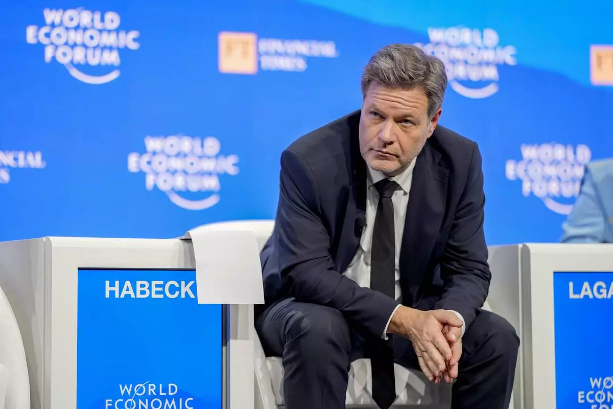 Economy and Climate Minister Robert Habeck attends the Annual Meeting of World Economic Forum in Davos, Switzerland, Wednesday, Jan. 22, 2025. (AP Photo/Markus Schreiber)