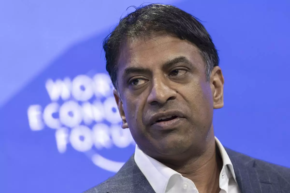 Chief Executive Officer of Novartis Vas Narasimhan speaks during a panel session during the 55th annual meeting of the World Economic Forum (WEF), in Davos, Switzerland, Wednesday, Jan. 22, 2025. (Michael Buholzer/Keystone via AP)