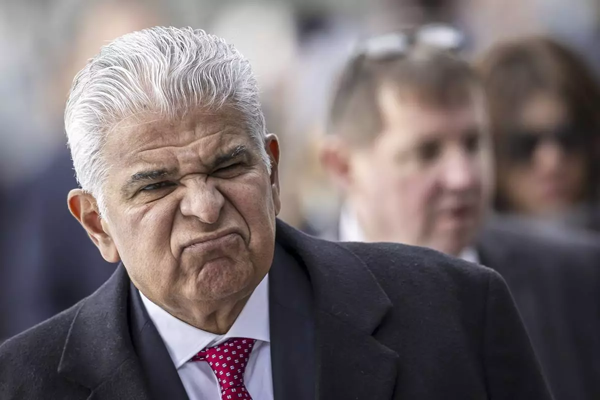 Jose Raul Mulino Quintero, President of Panama, reacts after a panel session during the 55th annual meeting of the World Economic Forum, WEF, in Davos, Switzerland, Wednesday, Jan. 22, 2025. (Michael Buholzer/Keystone via AP)