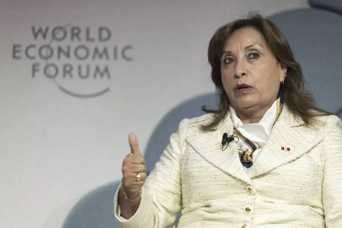 President of Peru Dina Ercilia Boluarte speaks during a panel session of the 55th annual meeting of the World Economic Forum (WEF), in Davos, Switzerland, Wednesday, Jan. 22, 2025. (Michael Buholzer/Keystone via AP)