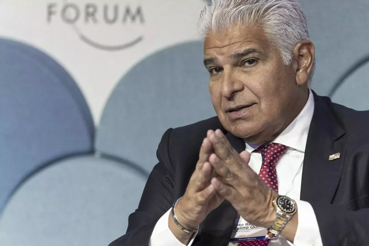 President of Panama Jose Raul Mulino Quintero speaks during a panel session in the 55th annual meeting of the World Economic Forum (WEF) in Davos, Switzerland, Wednesday, Jan. 22, 2025. (Michael Buholzer/Keystone via AP)