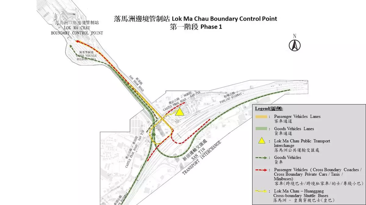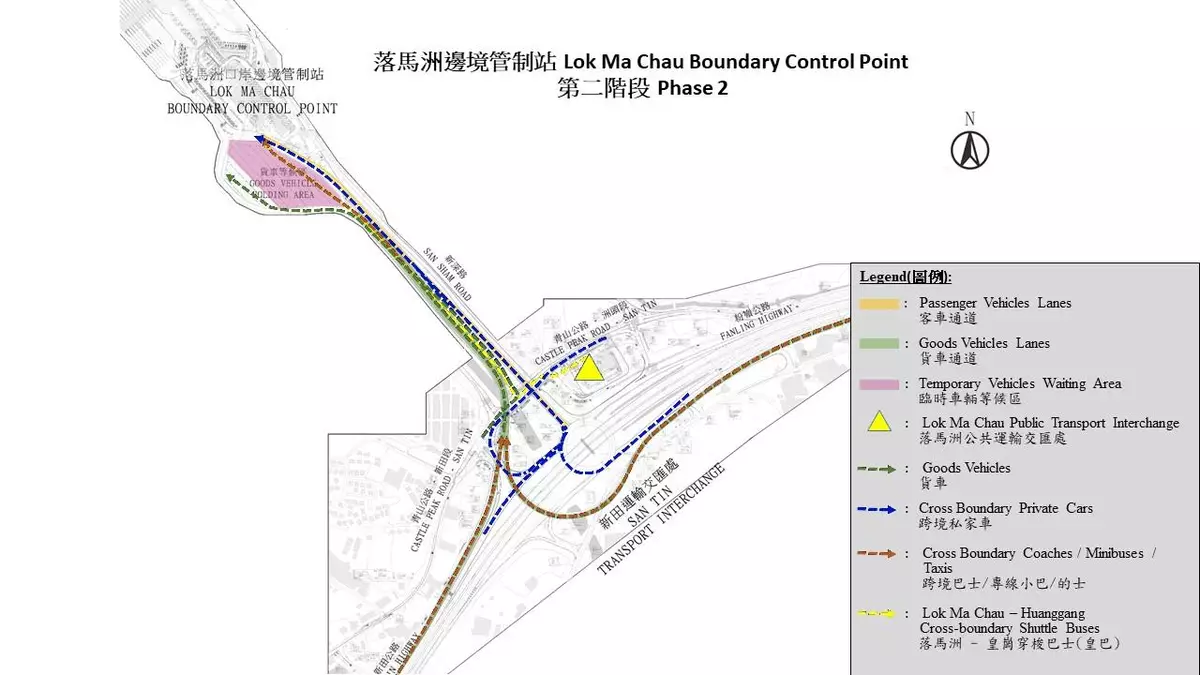 - Lok Ma Chau – Huanggang cross-boundary shuttle buses will enter Castle Peak Road after leaving Lok Ma Chau Public Transport Interchange, and will be instructed to turn right to the goods vehicle lanes of San Sham Road to enter the goods vehicle holding area; and