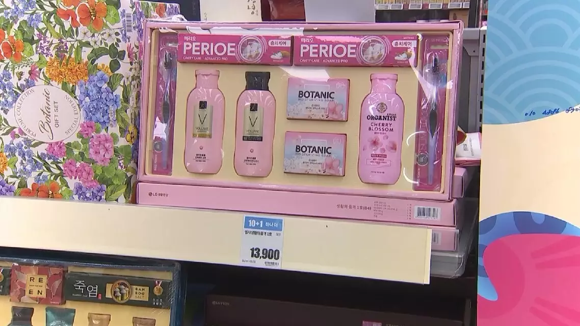 In a supermarket in Seoul, mid- to low-priced gifts sets are favored by consumers and sales for those under 10,000 won (around 7 U.S. dollars) have surged by 64.5 percent year on year.