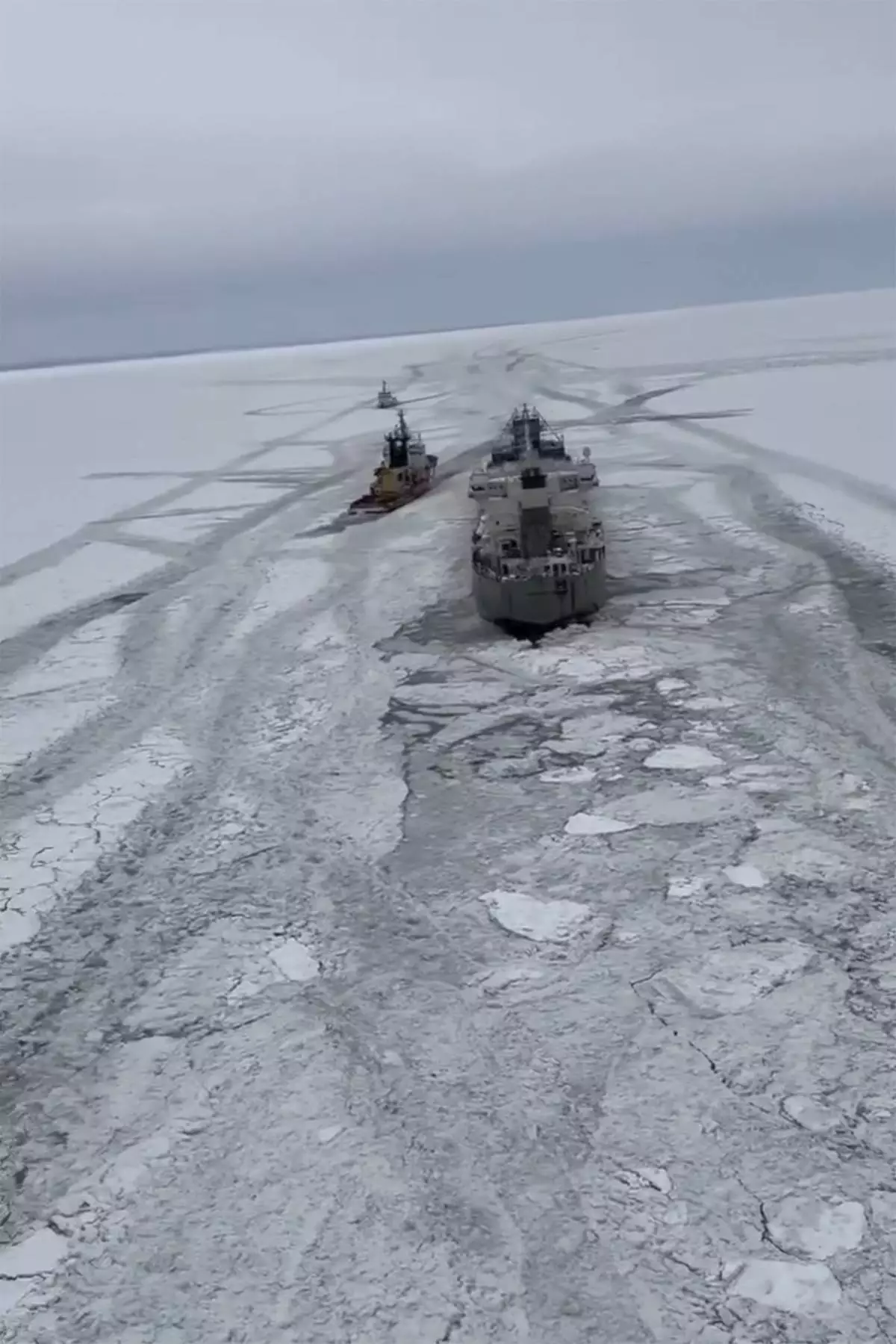 BUFFALO, N.Y. (AP) — The U.S. and Canadian Coast Guards on Saturday continued efforts to break up ice and free a freighter that has been trapped in a frozen Lake Erie for days, officials said.