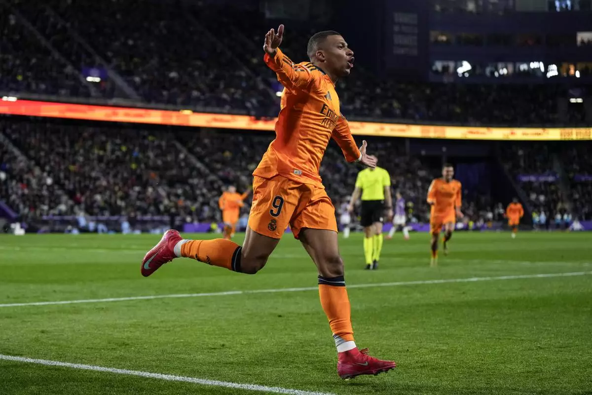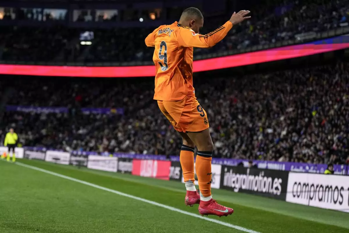 Mbappé swept in Madrid’s first goal on the half-hour mark after a flowing team attack of quick passes to weave the ball through a packed Valladolid area that culminated in Jude Bellingham’s assist for the France star.