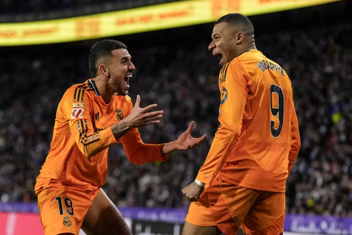 He made it a double in the 57th by finishing off a three-against-two counterattack after Federico Valverde intercepted a Valladolid pass. Mbappé took a pass by Rodrygo and rifled in a low strike from the left side of the box.