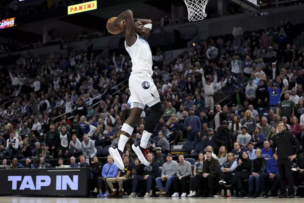 With the Timberwolves leading 91-77 midway through the third quarter, Edwards missed a 3-pointer from the wing, but Gobert came down with the rebound. Naz Reid then missed a short hook shot, but Gobert tipped the rebound to an open spot on the court and then ran it down. The ball eventually made it back to Edwards, who drained a 3 to give Minnesota its largest lead of the game at 17 points.