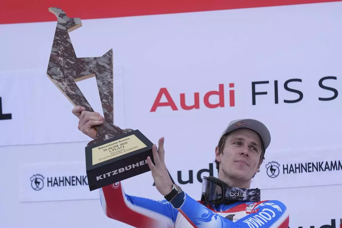 KITZBUEHEL, Austria (AP) — Olympic champion Clement Noel won his fourth World Cup slalom of the season Sunday, triumphing after first-run leaders Timon Haugan and Steven Amiez both faltered on one of the most challenging courses on the circuit.