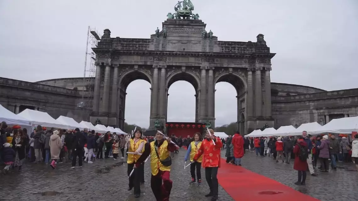 At the event, the CMG Spring Festival Gala promotional video was showcased against Belgium's famous landmark buildings, using lights and melodies to convey the rich festive atmosphere of the Chinese New Year.