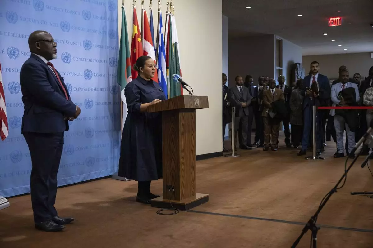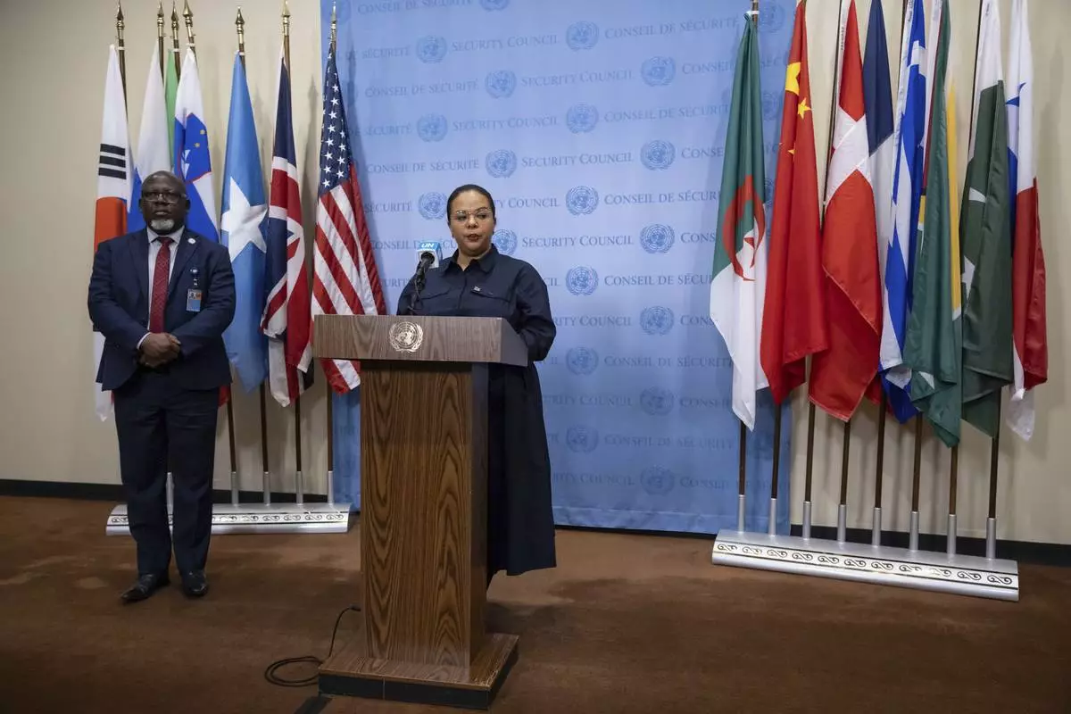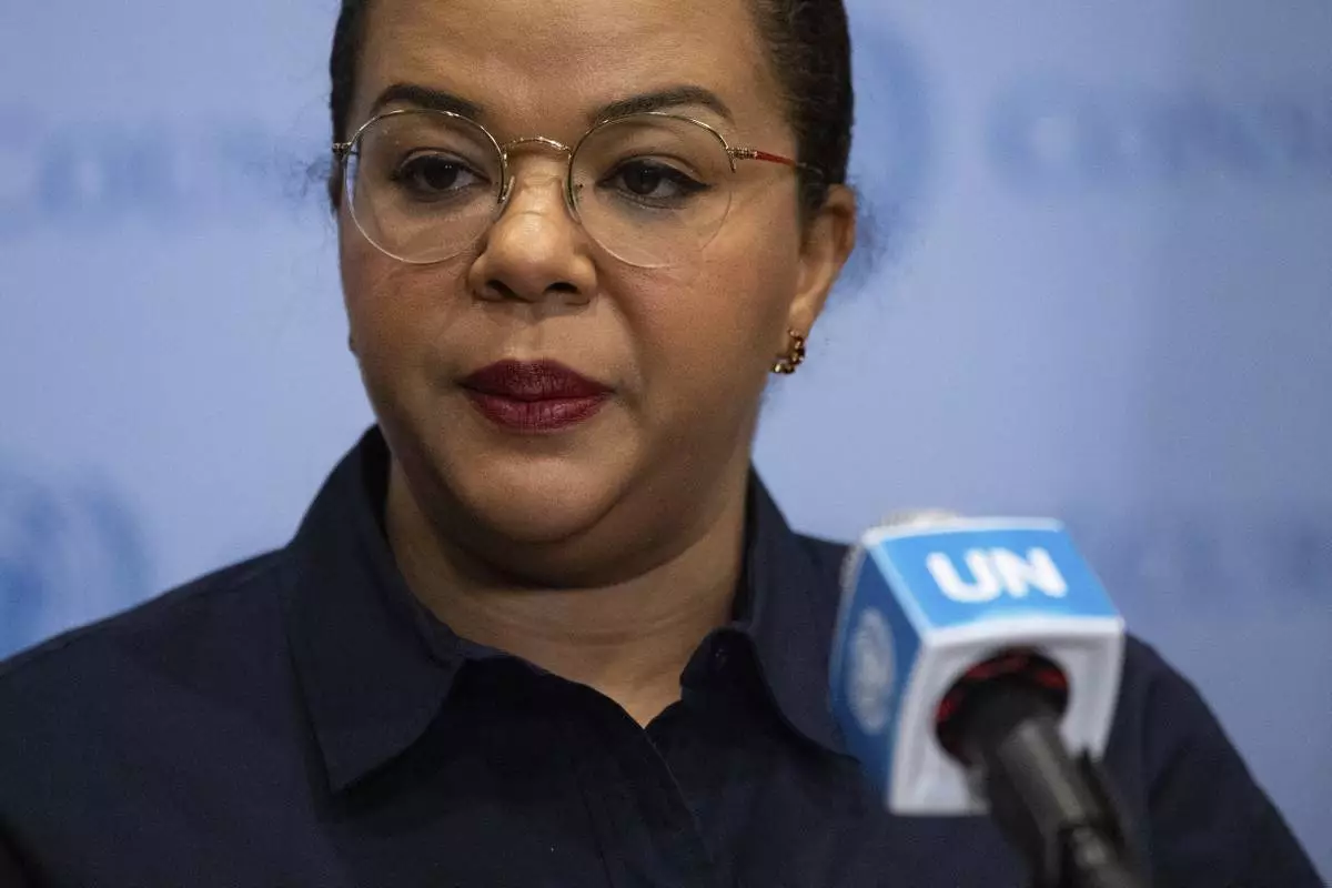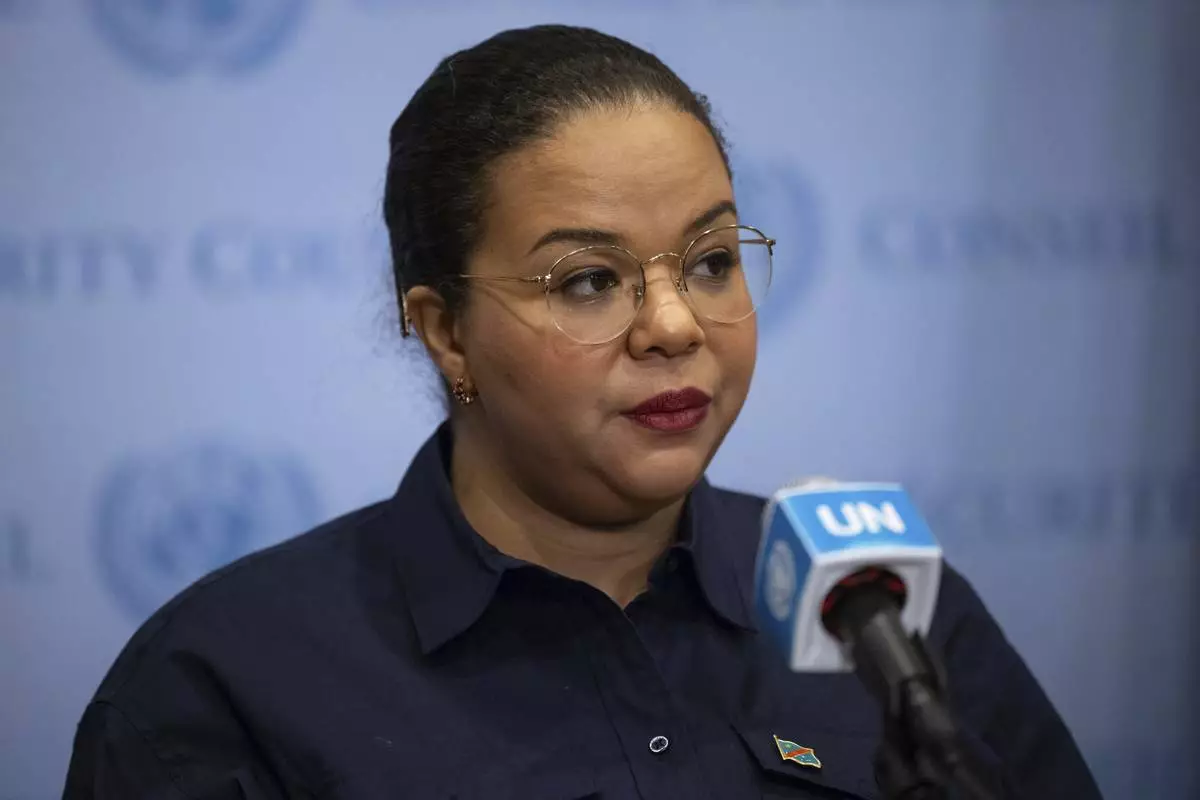Democratic Republic of the Congo's State Minister, Minister of Foreign Affairs, International Cooperation and Francophonie Thérèse Kayikwamba Wagner speaks during a press conference at the United Nations headquarters, Sunday, Jan. 26, 2025. (AP Photo/Yuki Iwamura)
