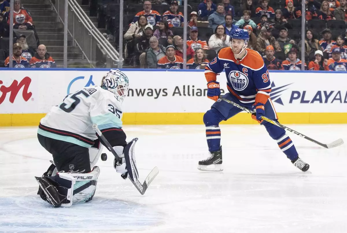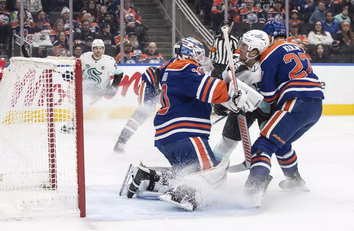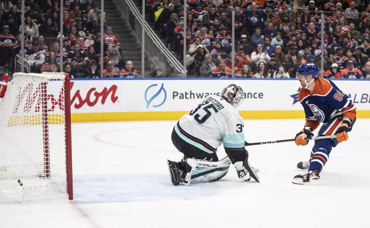 EDMONTON, Alberta (AP) — Connor McDavid and Corey Perry scored in the second period and the Edmonton Oilers rallied to beat the Seattle Kraken 4-2 on Monday night for their third straight win.