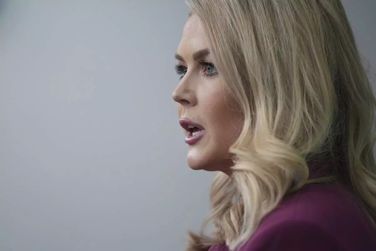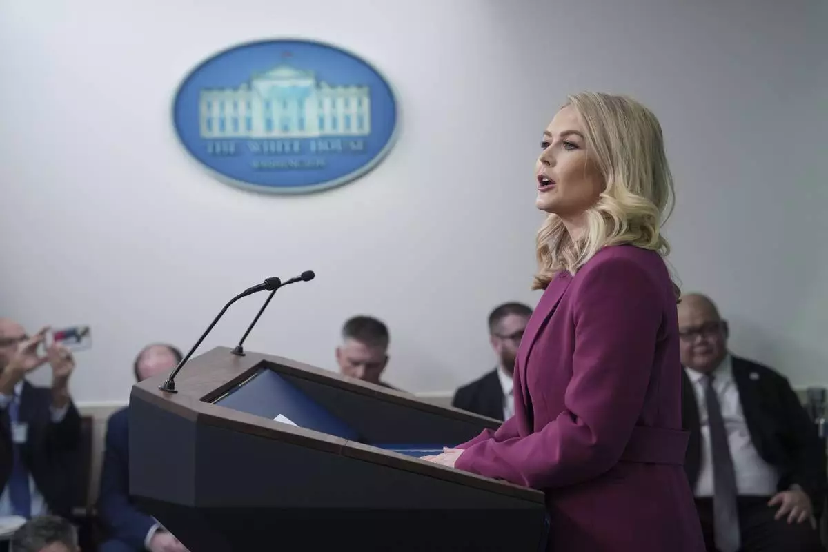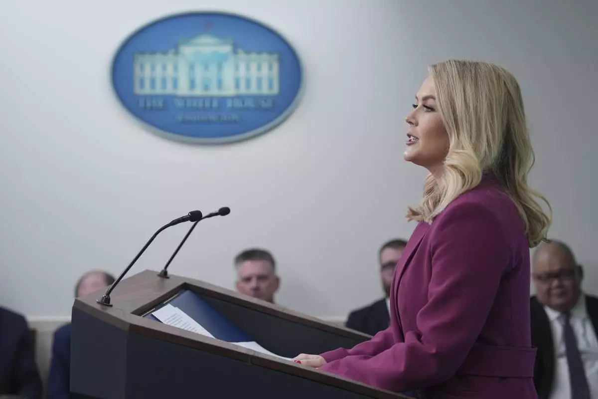White House press secretary Karoline Leavitt speaks at the daily briefing at the White House in Washington Tuesday, Jan. 28, 2025. (AP Photo/Ben Curtis)
